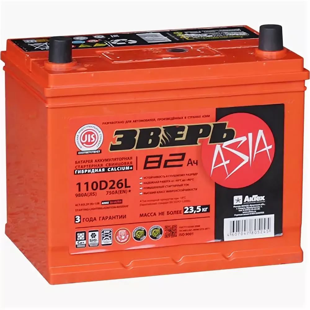Аккумулятор ЗВЕРЬ ASIA 82 А/ч ОБР 260x175x225 EN750