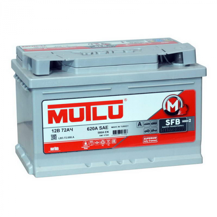 /Аккумулятор MUTLU SFB 72 А/ч 572 115 058 обратная R+ EN 580A 278x175x175 SMF57260 LB3.72.058.A