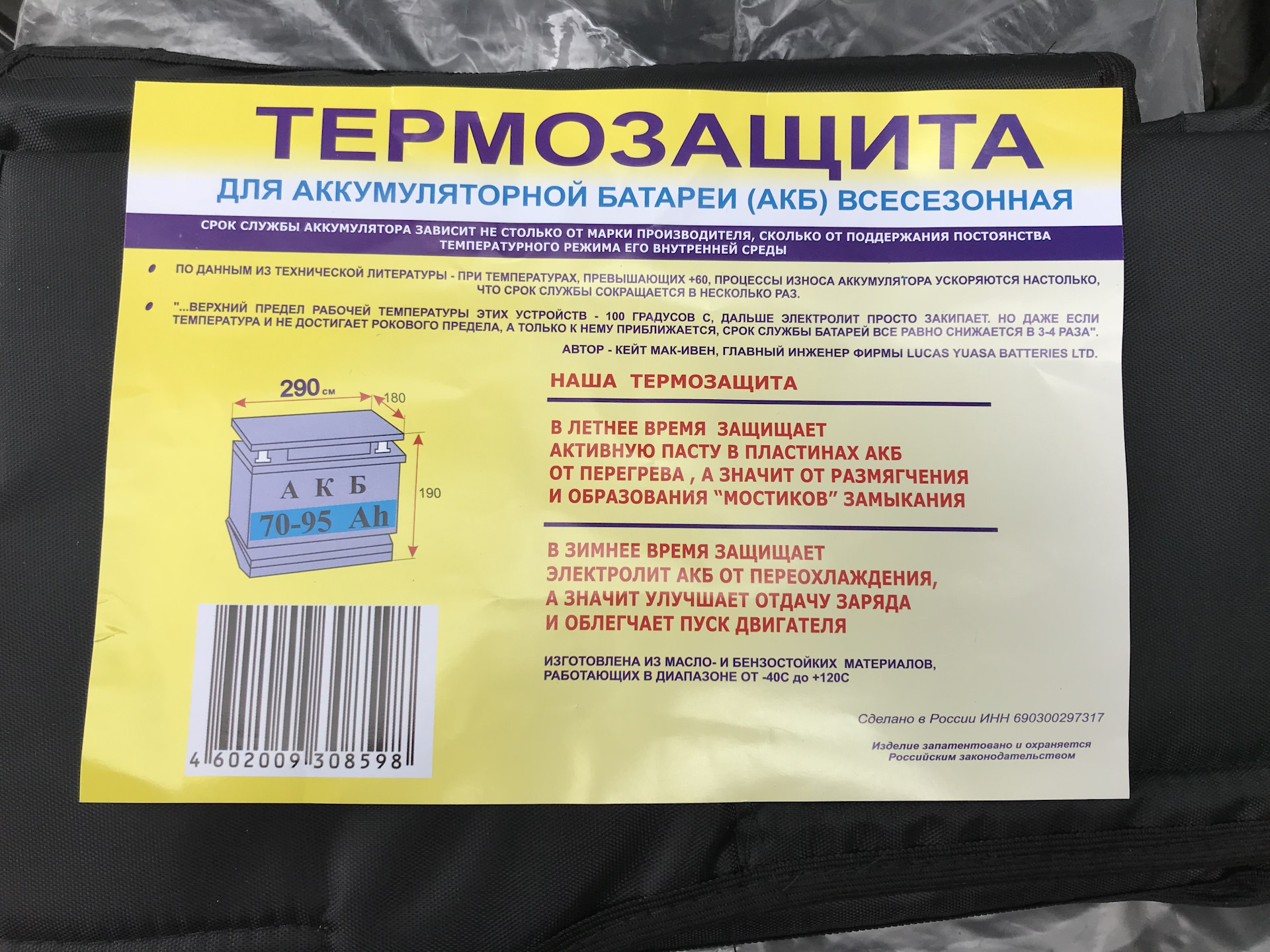 /Термозащита для аккумулятора 190х250х180
